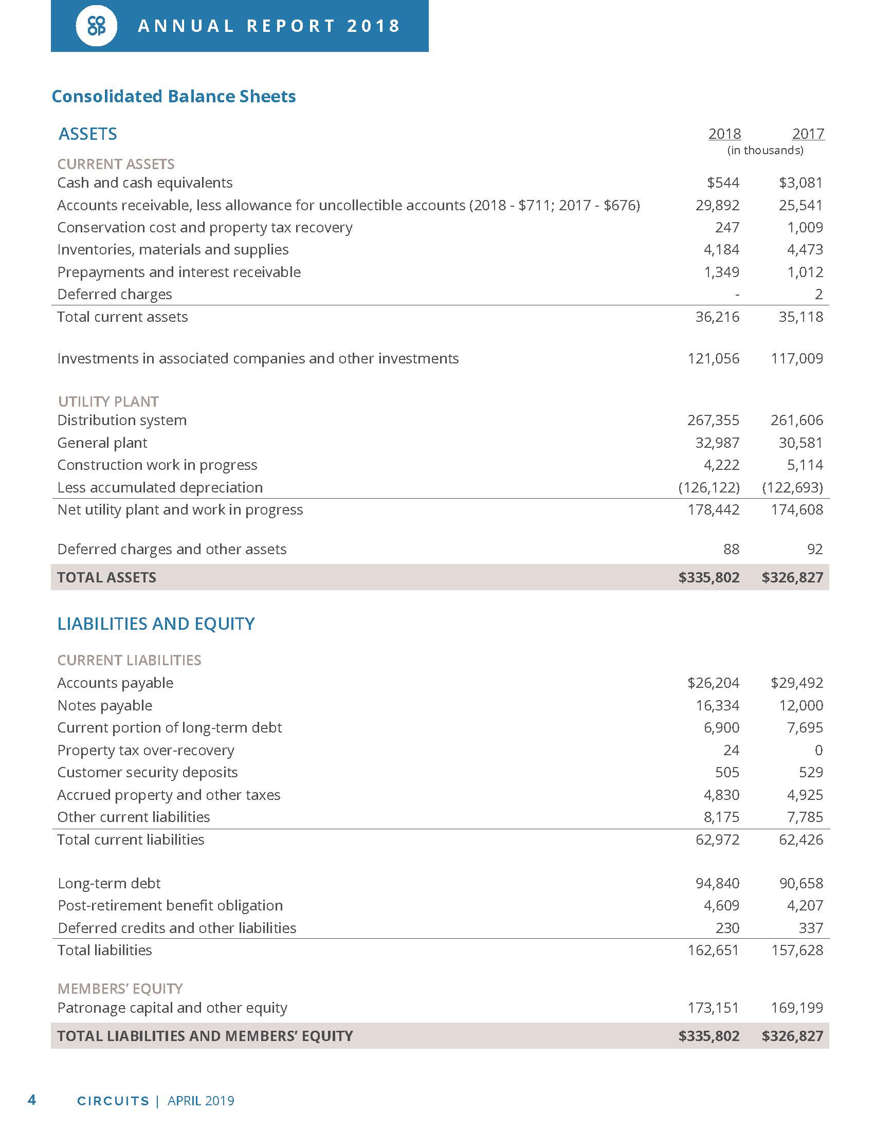 Dakota Electric Association received a clean financial statement from its auditors. The consolidated balance sheets, statements of operations and statements of cash flow show the financials for 2018 and 2017. Complete financial statements are also available online.