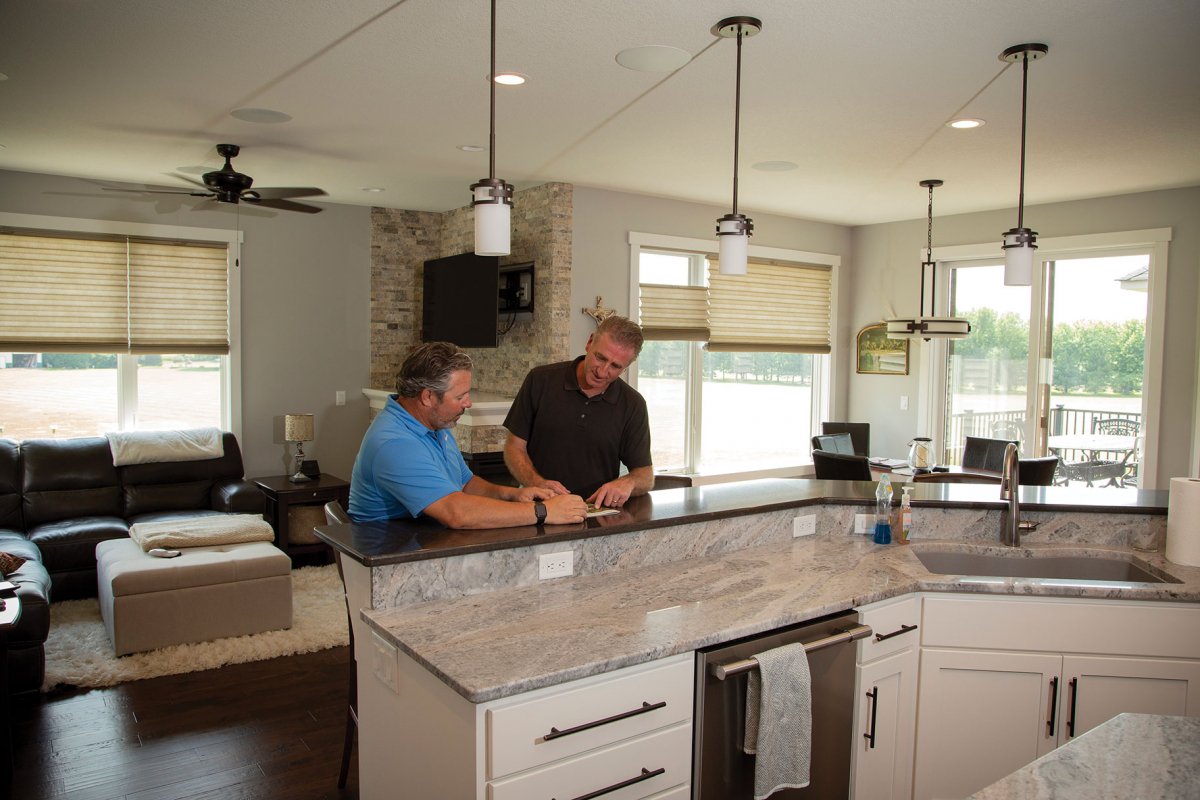 Jeff Neuman, and Dakota Electric’s energy and member service manager, Dave Reinke, review the savings from Jeff’s recent electric bill.