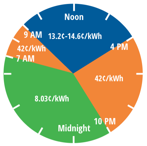 The first change affects our electric vehicle (EV) time-of-use rate. Since 2012, this rate has offered lower pricing for off-peak charging. To better align with shifting peak demand, the off-peak period will shift from 9 p.m.–8 a.m. to 10 p.m.–7 a.m., Monday through Friday (excluding holidays and including weekends). A new morning peak period from 7–9 a.m. will also be added.