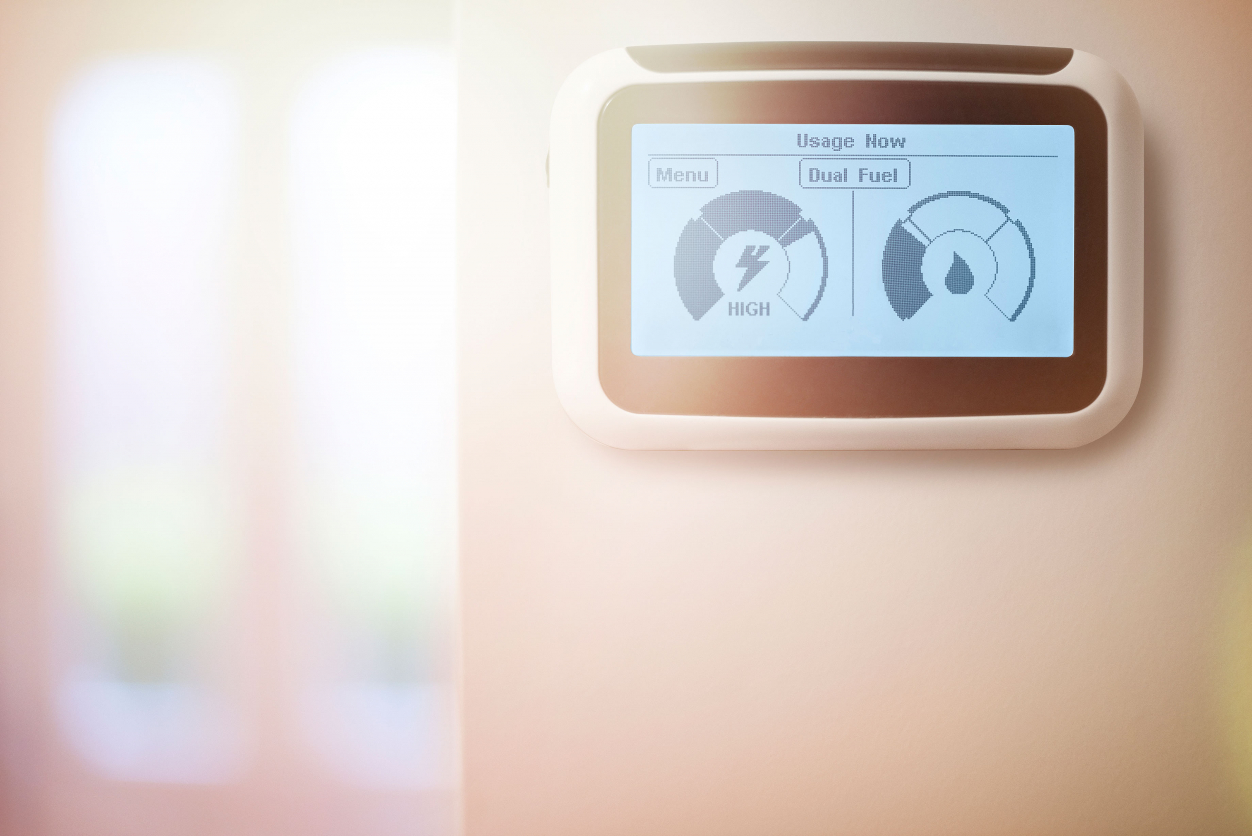 Banner image for program and rebates page. Duel Fuel Thermostat sits in the upper right of the photo.