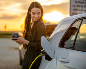 EV-Charging-Lifestyle Medium shot of a woman leaning back on her white EV as it charges. allie.shetlerDEA2022-05-17T07:47:05-05:00May 17th, 2022| Share This Story, Choose Your Platform! FacebookTwitterLinkedInEmail