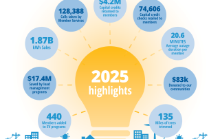 440 Members added to Electric Vehicle Programs$17.4 Million saved by load management programs1.87 Billion kWh sales128,388 calls taken by Member Services$4.2 Million capital credits returned to members74,606 Capital credit checks mailed to members20.6 Minutes - [...]