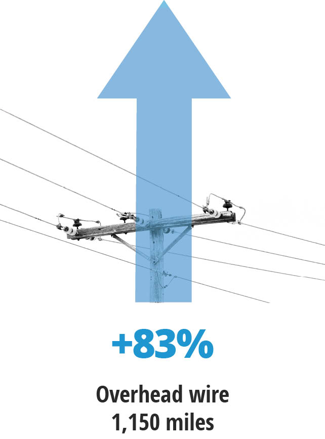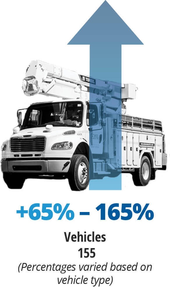 Since 2019, the cost of supplies and materials have increased exponentially. The below graphics show how much each asset has increased in cost since 2019 along with how many units/miles of each Dakota Electric maintains.
