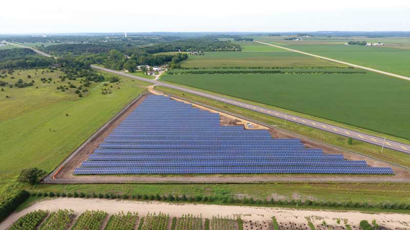 Aerial view of 1 megawatt solar site near Hastings, MN.